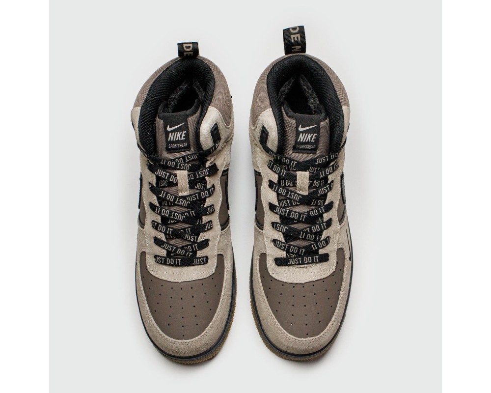 Кроссовки Nike Air Force 1 Mid L.Grey / D.Grey with Fur - арт. f-25726